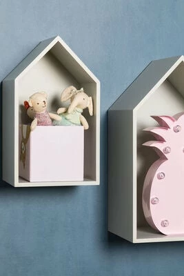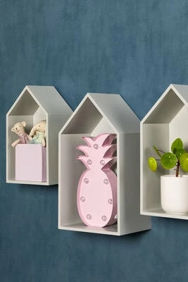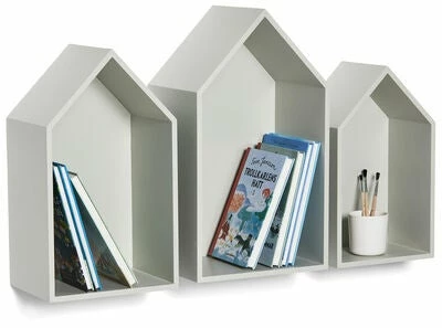 En stilren og stabil bokhylle i moderne design, fra Alice & Fox. Bokhylla består av tre deler, som kan monteres på veggen. En praktisk innredningsdekorasjon, som passer fint til bøker, filmer leker og annet. Takket være den barnevennlig designen, gjør hylla seg ekstra godt på barnerommet.
