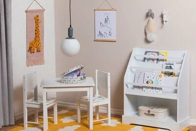 Dette er en stilig og stabil bokhylle i en moderne design fra Alice & Fox. En praktisk bokhylle med rom for ukeblader og hylleplan for skuffer eller lignende. Denne stilige bokhyllen passer inn i ethvert rom, men den barnevennlige høyden gjør at den passer ekstra godt i barnerommet.