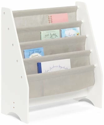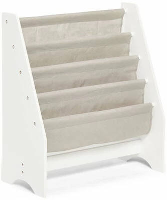 En fin bokhylle fra Alice & Fox. Bokhyllen har fem tekstillommer, hvor du kan legge bøker, magasiner og leker. Mål: 63,5 x 31 cm och 10 x 71 cm