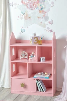 En bokhylle med vinduer og et prinsessetema, fra Alice & Fox. Oppbevar barnets eiendeler på en praktisk og lett tilgjengelig måte i rommet. Bokhyllen er i tillegg en nydelig interiørdetalj!
