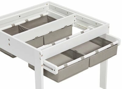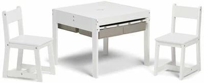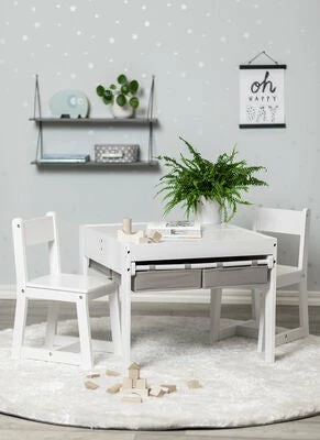En lite sett med møbler fra Alice & Fox, bestående av to stoler og et bord i klassisk design. Settet er laget av stabil MDF. Lekebordet er utstyrt med innebygget oppbevaringsrom – løft på bordplatene for å finne god plass til penner, papir eller andre ting du vil ha lett tilgjengelig. En koselig plass å tegne, lese eller pusle ved, uten at alt trenger å ligge framme.