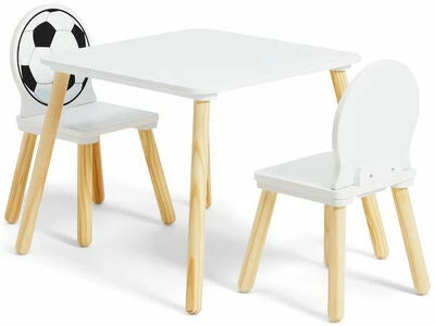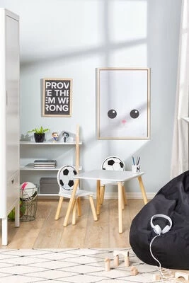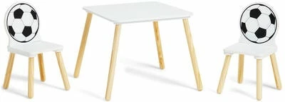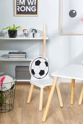 Et fint møbelsett med et bord og to stoler fra Alice & Fox. Samtlige deler er dekorert med et tøft fotballmotiv. Møblene er laget i MDF og furu, noe som gjør dem robuste og stabile. Sitt og spis ved bordet – eller hvorfor ikke lese, tegne og male? Et fantastisk sett med møbler, som passer perfekt til barnerommet!