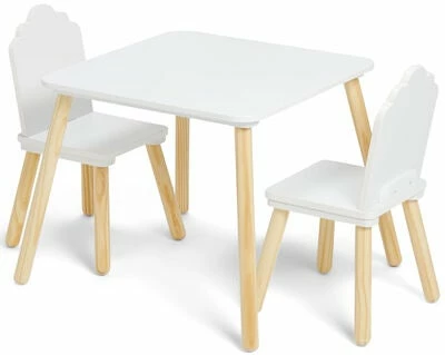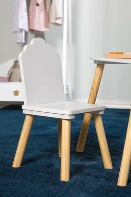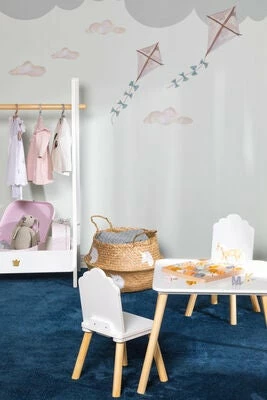 Et fint møbelsett med et bord og to stoler fra Alice & Fox. Samtlige deler er dekorert med et søtt skymotiv. Møblene er laget i MDF og furu, noe som gjør dem robuste og stabile. Sitt og spis ved bordet – eller hvorfor ikke lese, tegne og male? Et fantastisk sett med møbler, som passer perfekt til barnerommet!