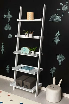 En fin bokhylle fra Alice & Fox. Bokhyllen har en stilren, stigeformet design, og passer perfekt til oppbevaring av både bøker, leker og innredningsdetaljer. Stigehyllen er enkel å montere, og blir en flott detalj på barnerommet!
