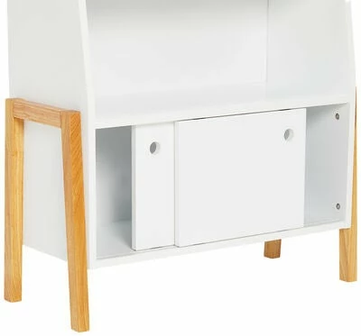En fin bokhylle fra Alice & Fox. Bokhyllen er laget av stabil MDF, og har et stilrent design som passer i alle barnerom. Møbelet har åpne hylleplan, og et hylleplan med skyvedør. Fyll hyllene med bøker, leker og annet du vil vise fram. Denne bokhyllen er både et praktisk oppbevaringsmøbel og en stilren innredningsdetalj!