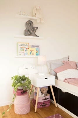 En lekkert nattbord fra Alice & Fox som passer perfekt ved siden av barnesengen. Nattbordet er laget i et stilrent design som gjør seg utmerket på barnerommet. En pen innredningsdetalj som kan matches med andre møbler fra Alice & Fox sin kolleksjon.Mål: Bord: H 54 x B 41 x D 39 cm.Skuff: 34 x 34 cm.Innside: 26 x 29 cm.Materiale: tre.Farge: hvit.