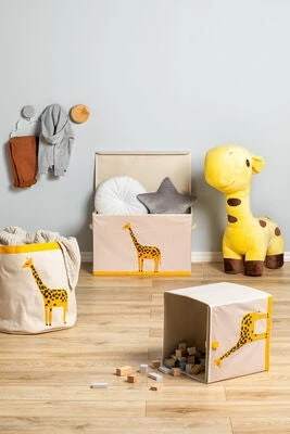 Fin oppbevaringsboks fra Alice &, Fox med motiv av en sjiraff. Oppbevaringsboksen er sammenleggbar, og tar dermed ingen plass når den ikke er i bruk. Perfekt for alt fra leker til klær.