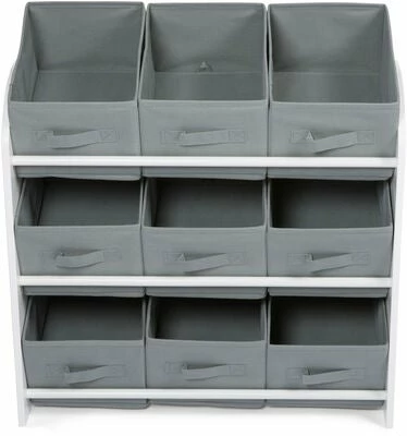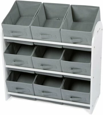 Innred barnerommet med denne stilige hyllen fra Alice & Fox. Hyllen har en stilfull design i tre og passer inn i alle rom. De ni skuffene er supre til oppbevaring av barnas leker og småsaker og hyllene har en høyde som gjør at barnet enkelt kan plukke sakene inn i og ut av hyllen selv.Mål: Hylle: H60 x D30 x B64 cm.Skuffer: H16 x D27 x B20 cm.Materiale: MDF, tre.Farge: hvit, grå.