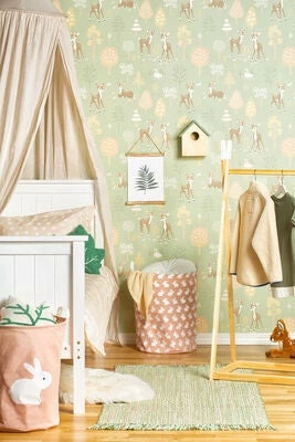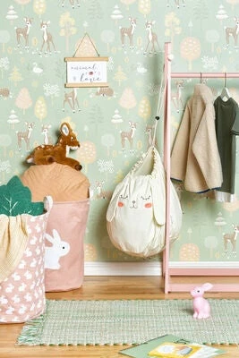 Et par praktiske oppbevaringskurver fra Alice & Fox. Den er laget av en bomull- og polyesterblanding, og gjør det lettere å holde orden på barnerommet, samtidig som den blir en fin innredningsdetalj.