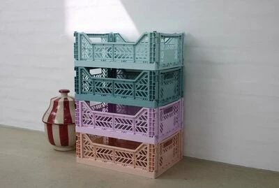 Praktisk Midi oppbevaringskasse fra Aykasa i PP-plast med smarte hull i sidene. De sammenleggbare kassene fra Aykasa er designet for hjemorganisering og oppbevaring. Du kan stable dem, oppbevare dem samt blande farger og størrelser som du vil. – Finnes i flere farger og størrelser. – Kan legges sammen. – Stabelbar oppbevaringskasse. – 100 % PP-plast.