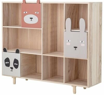 En fin og praktisk bokhylle med skuffer, fra Bloomingville Mini. Bokhyllen er laget av stabilt og slitesterkt Paulownia-tre. Hyllen har søte skuffer som forestiller dyr, som kan flyttes rundt etter eget ønske. Perfekt for oppbevaring av klær, leker eller annet på barnerommet!