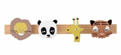 En fin knaggrekke fra Bloomingville, med fire fargerike knagger formet som forskjellige dyr – en løve, en sjiraff, en panda og en tiger. Et praktisk sted å henge fra seg klær og vesker, som du enkelt skrur fast på veggen. Skaper en leken atmosfære på barnerommet.