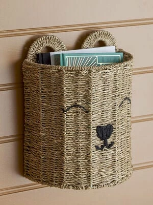 Søt Tesse kurv fra Bloomingville i sjøgress. Plasser den på bordet eller heng den på veggen. Perfekt til oppbevaring av leker og accessoirer. – Anbefalt alder: fra 3 år. – Sjøgress, jern.
