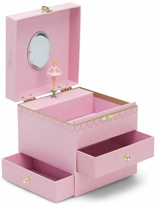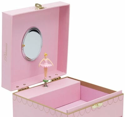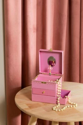 En vakker musikkboks fra Cloudberry Castle. Musikkboksen har en ballerina som danser til en fin melodi hver gang du åpner lokket. Den har et fint, ovalt speil på innsiden, og plass til smykker og andre ting du vil oppbevare på et fint sted. En søt og praktisk innredningsdetalj til barnerommet!
