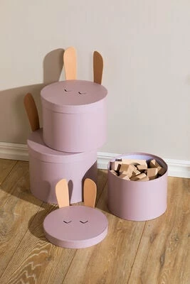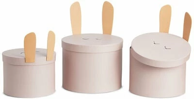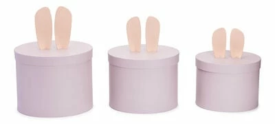 Tre søte oppbevaringsbokser i forskjellige størrelser fra Cloudberry Castle. Boksene er dekorert med små, søte kaninører i lær. Perfekte bokser å oppbevare små hemmeligheter i!