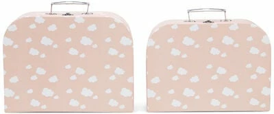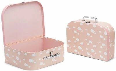 En 2-pack med pappkofferter i flott design fra Cloudberry Castle. Med et håndtak i sølv og en liten låsespenne, passer koffertene både som oppbevaringsboks, leketøy, og også som reisekoffert når barnet er på sprang. Mål stor koffert: L 32.8 x B 24.2 x H 11 cmMål liten koffert: L 31.4 x B 22.5 x H 10 cm