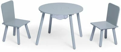 Dette settet med barnemøbler fra Cloudberry Castle inneholder et stilig bord og to stoler. Settet blir en utmerket plass til å sitte og tegne, pusle og lese ved. Møblene er laget av tre som tåler massevis av lek, og bordet har en smart skuff i midten med god plass til leker, tegnesaker og alt hva det måtte være!