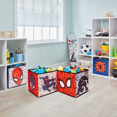 Boks fra HelloHome med et klistremerkeark. Den er laget av rød, blå, hvit polyester. – 4-pakning– Mål: H 28 x B 28 x D 28 cm