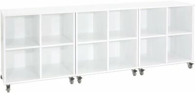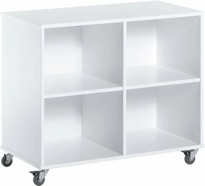 Hoppekids Hylle er en fin hylle med fire oppbevaringsrom. Beina er utstyrt med hjul som gjør at du enkelt kan flytte den dit du vil ha den. Hyllen er såpass lav at barnet kan nå den fra alle kanter, samt at den ikke dekker dekorasjoneer og bilder man måtte ha på veggen.Mål: 62,5x69x41,5 cmHøyde med hjul: 69 cm.Høyde uten hjul: 61,7 cm.Material: MDFFarge: Hvit.