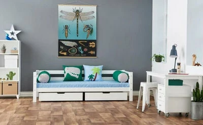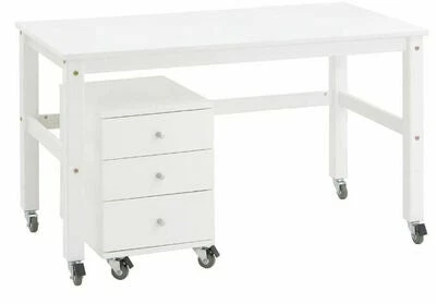 Stilrent JONAS skrivebord fra Hoppekids med låsbare hjul. De låsbare hjulene gjør det lett å flytte bordet på en sikker og stabil måte. Det store skrivebordet på 115×62,5 cm gir deg masser av plass til lekser og kreative prosjekter. Settet er overflatebehandlet med vannbasert lakk uten skadelige kjemikalier, og er laget av FSC® (FSC-C109484)-sertifisert furu og MDF. – Kompatibel med: Jonas Oppbevaringskommode. – FSC-sertifisert tre, furutre, MDF.