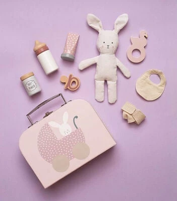 Et søtt lekesett, fra Jabadabado. Settet består av en veske og tilhørende kaninleke, med flere spennende tilbehør. Ta vare på kaninen din, med alt det morsomme tilbehøret. Du kan for eksempel mate den, eller skifte bleien. Alt leveres i den fine vesken, som du enkelt låser med hjelp av en spenne.- Veske- Kanin- Smekke- Tåteflaske- Flere ekstra tilbehørAnbefalt alder: fra 0 måneder.