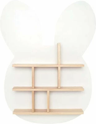 En søt vegghylle fra JaBaDaBaDo, formet som en kanin. Hyllen har flere rom med plass til bøker, leker og andre småting. Den henges lett opp på veggen på barnerommet.