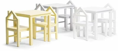 Et fint sett med barnemøbler fra JLY. Settet består av ett bord og to stoler, og skaper et trivelig miljø inne på barnerommet. Stolene er dessuten formet som små hus!Anbefalt alder: 3-6 år.