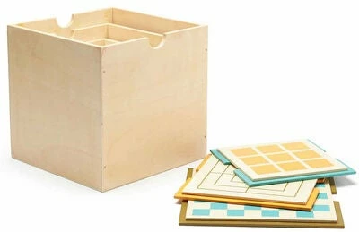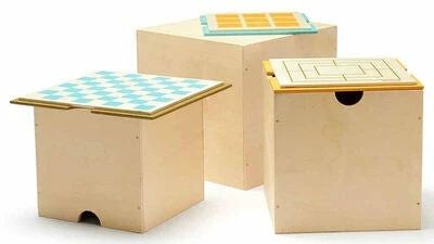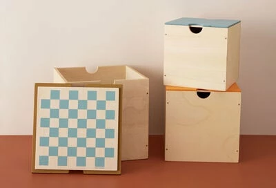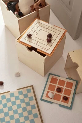 Tre praktiske, lekne bokser fra Kids Concept i tre. De har en godt planlagt plass på innsiden egnet for enten leker eller de andre boksene i settet og tre forskjellige, spennende brettspill under lokket. – eskene har ingen brettspillbrikker inkludert, men kan brukes med små figurer, steiner, perler og slikt– Anbefalt alder: fra 3 år– 100 % kryssfinér