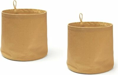 Sylindrisk oppbevaringskurv fra Kids Concept i økologisk bomull. Takket være sin stabile konstruksjon kan den stå opprett selv. Den kan også henges på veggen ved hjelp av hanken. – 2-pakning. – GOTS-sertifisert økologisk bomull.