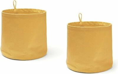 Sylindrisk oppbevaringskurv fra Kids Concept i økologisk bomull. Takket være sin stabile konstruksjon kan den stå opprett selv. Den kan også henges på veggen ved hjelp av hanken. – 2-pakning. – GOTS-sertifisert økologisk bomull.