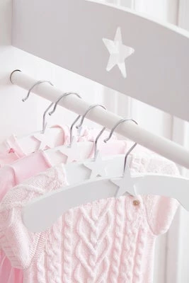 En fin pakke med et klesstativ og 6 kleshengere fra Kids Concepts serie Star.