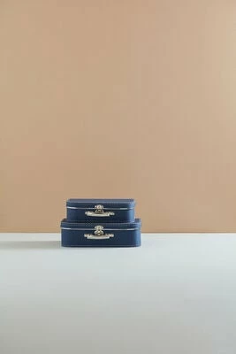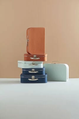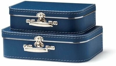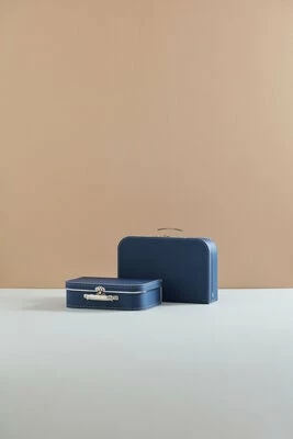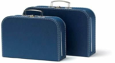 To kofferter i papp fra Kids Concept. De kommer i forskjellige størrelser og er laget av sterk papp, med runde hjørner og dekorative sømmer. Pakk ned favorittlekene dine, steng med knepplåsen og bær kofferten i håndtaket. De kan stables og brukes som oppbevaring på barnerommet, eller lagres i hverandre når de ikke er i bruk.Anbefalt alder: Fra 3 år.
