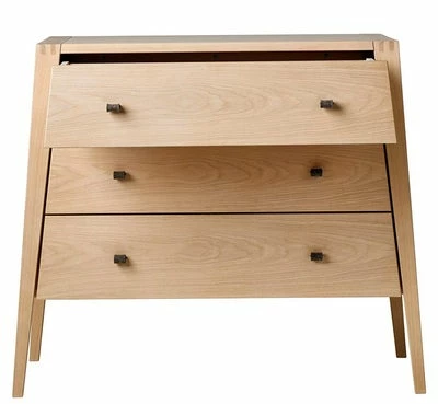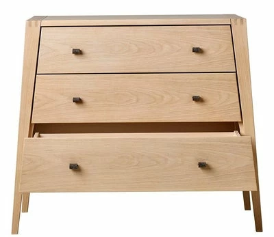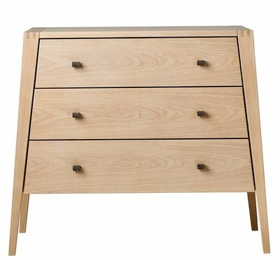 Linea er en stilren kommode i skandinavisk design med smakfulle detaljer, fra Leander. Kommoden har tre skuffer med myk bremsemekanisme, som sikrer at små barn ikke klemmer fingrene. Skuffene har myke hanker av filt, som gir et mykt og minimalistisk inntrykk. Håndtakene kan byttes ut mot andre farger, eller hanker av lær. Kommoden er behandlet med slitesterk lakk som holder i mange år. Linea-kommoden kan også gjøres om til en stellekommode ved å kombineres med stellebordene Linea eller Matty fra Leander (kjøpes separat). Spesifikasjoner: Høyde: 85 cm Bredde: 100 cm Dybde: 50 cm Vekt: 40 kg Materiale: Solid eik, MDF, sponplate