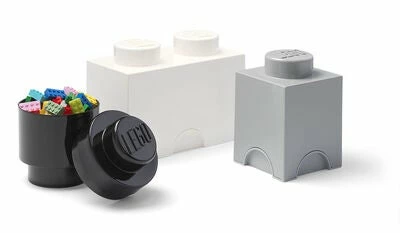 Innred barnerommet på en morsom måte, med disse oppbevaringsboksene fra LEGO! De tre boksene er formet som LEGO-klosser med to respektive en knott. De firkantede boksene har en skuff på siden, og den runde boksen har et lokk. Boksene er perfekte til oppbevaring av småsaker, eller hvorfor ikke LEGO-klossene dine? Kjøp flere oppbevaringsbokser i forskjellige størrelser fra LEGO, og bygg en hel hylle!
