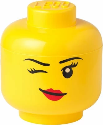 En kul oppbevaringskasse formet som et LEGO-hode, perfekt å ha inne på barneommet. Her får man plass til masse småsaker man ikke vil ha slengende rundt!