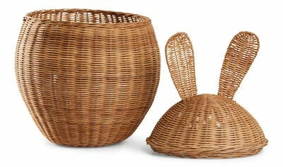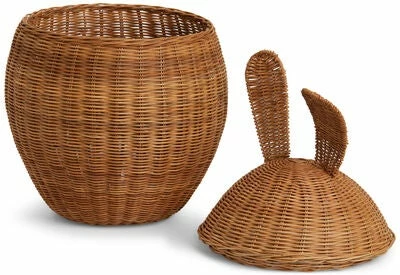 Fin oppbevaringskurv fra Minitude i rotting med et lokk med søte kaninører. Passer like godt på barnerommet som i andre rom i hjemmet. Perfekt til oppbevaring av leker og accessoirer. – Mål: 37×33/46/49 cm. – Maksimal vekt: 5 kg. – Anbefalt alder: fra 3 år. – 100 % rotting.