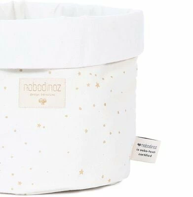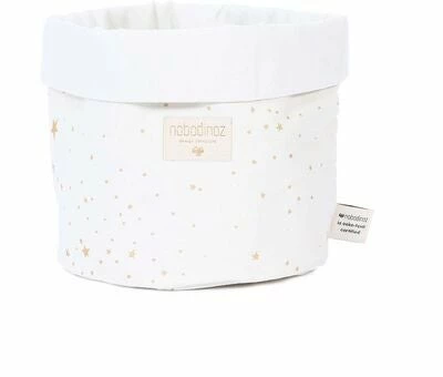 En praktisk oppbevaringskurv fra Nobodinoz. Denne myke oppbevaringskurven er laget av 100% økologisk bomull, med et mykt fyll i polyester. Kurven har plass til alt fra leker til småting, og gjør det lett å holde barnerommet ryddig.