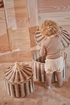 Vakker, romslig, brun Cirkus kurv fra OYOY som hjelper til å holde orden på leker og bøker med en stilren design. Den har et lettåpnet lokk. – 100 % rotting