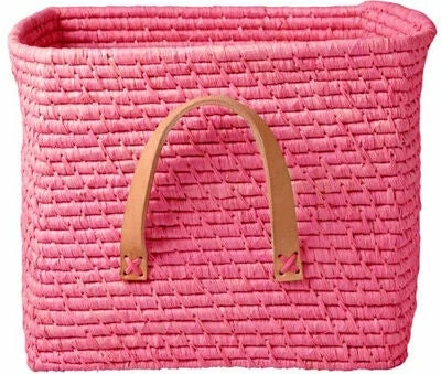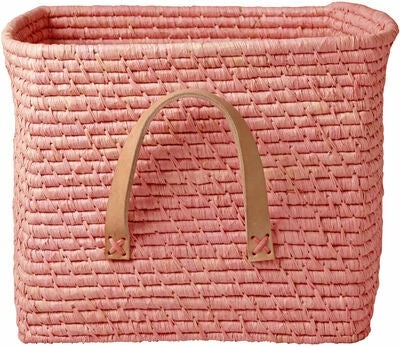 Rice Oppbevaringskurv Med Lærhåndtak, Rosa